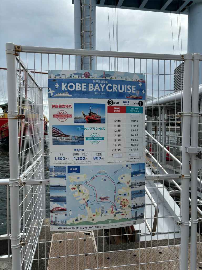 When I visited, the Kobe Port Tower was still under renovation. I wonder if the work is finished by 2026? I spotted a KOBE BAYCRUISE ship and couldn’t resist snapping a photo.