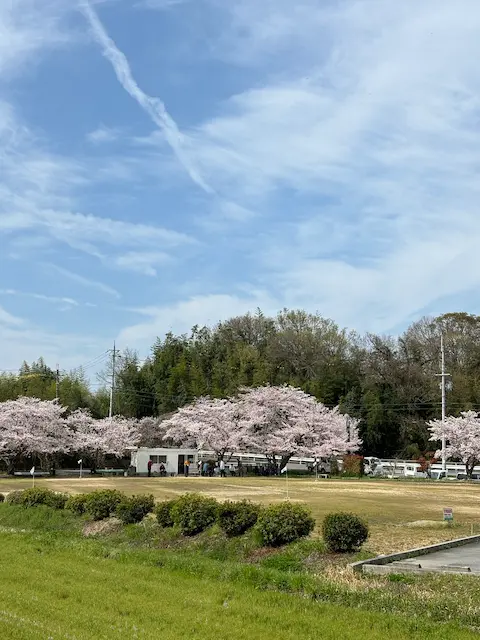 Imagine inverted cherry blossoms reflecting in a rice paddy! It felt like experiencing the beauty of nature. The famous Ono City shop, Plat Kisumi, was also selling delicious-looking rolled sushi along the Kako River. There were lots of Himeji license plates.