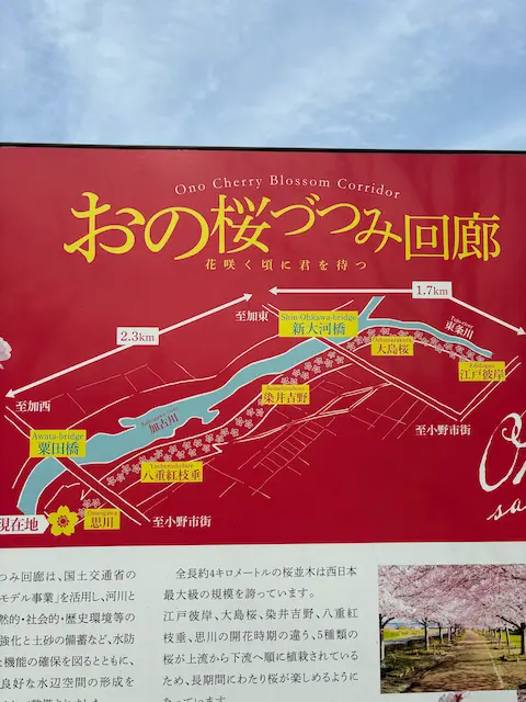 The Ono Sakura Tsutsumi Corridor was crowded due to its popularity, so I took my time viewing the cherry blossoms and paid my respects at Jodoji Temple instead.