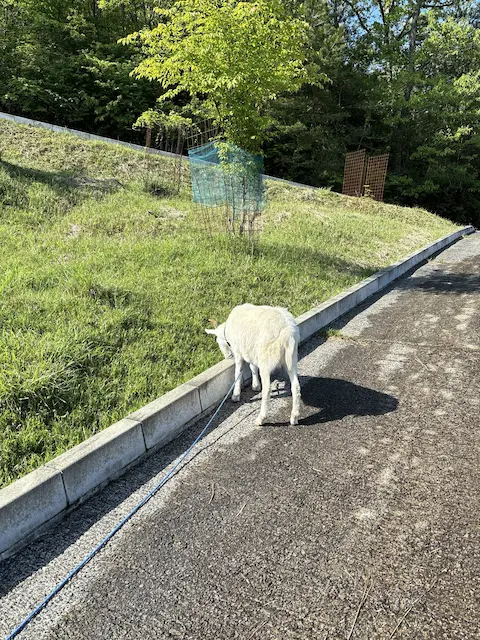 There was a cute little goat at the Yamashiro no Sato parking lot, so I snapped a photo. It was munching on grass, looking delicious.