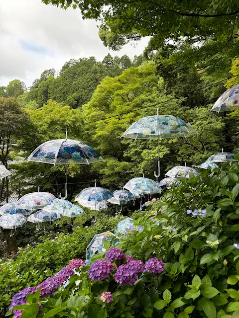 花手水ブームの先駆けとして有名ですよね。秋にはもみじをテーマにした花手水が見れるそうです。梅雨の時期は、アジサイですよね。ビニール傘がキレイに、セットされてましたよ。